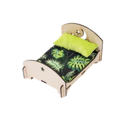 Łóżeczko gwieździste z wodoodpornym materacem i podusią w liście na czarnym tle dla małych zwierząt