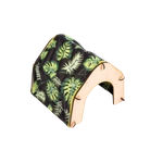 Domek z dachem - hamakiem i mięciutką poduchą w liście na czarnym tle dla małych zwierząt domowych